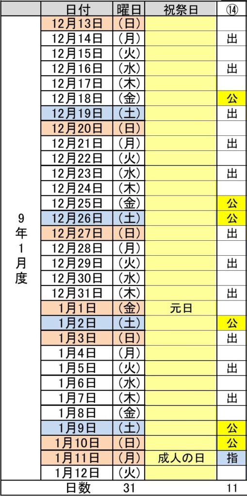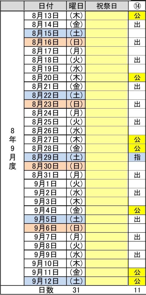 - 令和8年9月度(8/13~9/12) 14 パターン