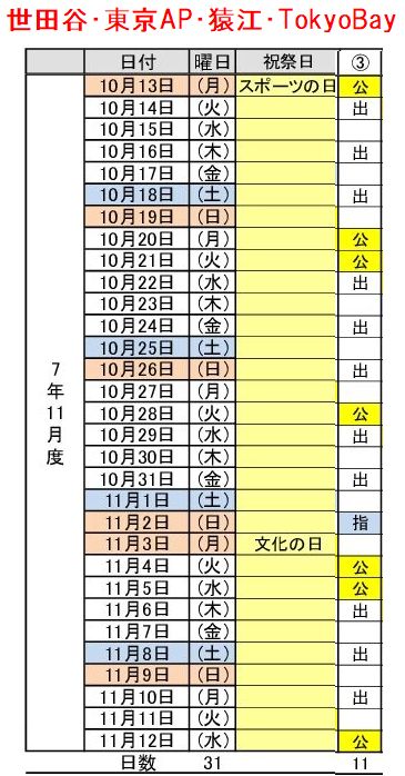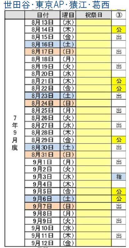 3パターン 令和7年 勤務表