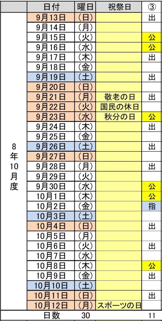 令和8年10月度(9/13~10/12) 3パターン