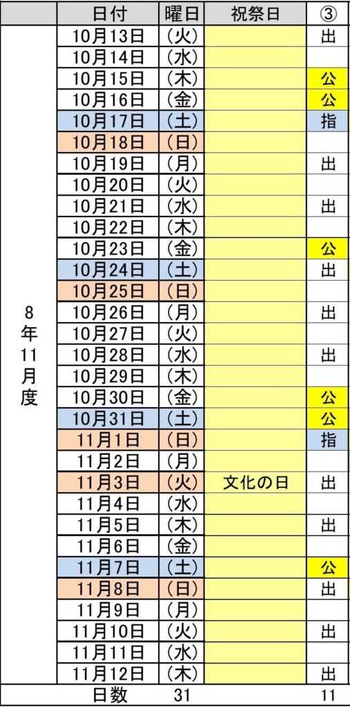 - 令和8年11月度(10/13~11/12) 3パターン