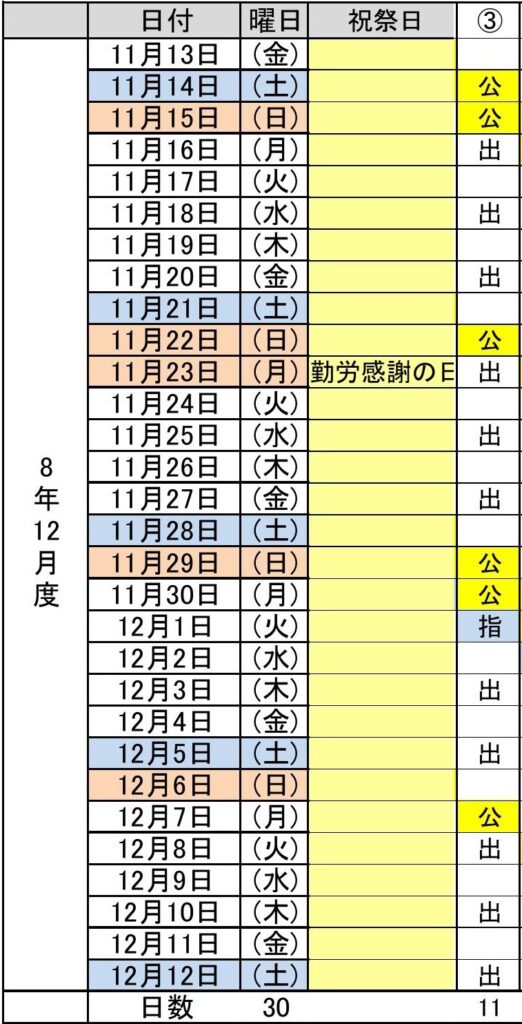 令和8年12月度(11/13~12/12) 3パターン