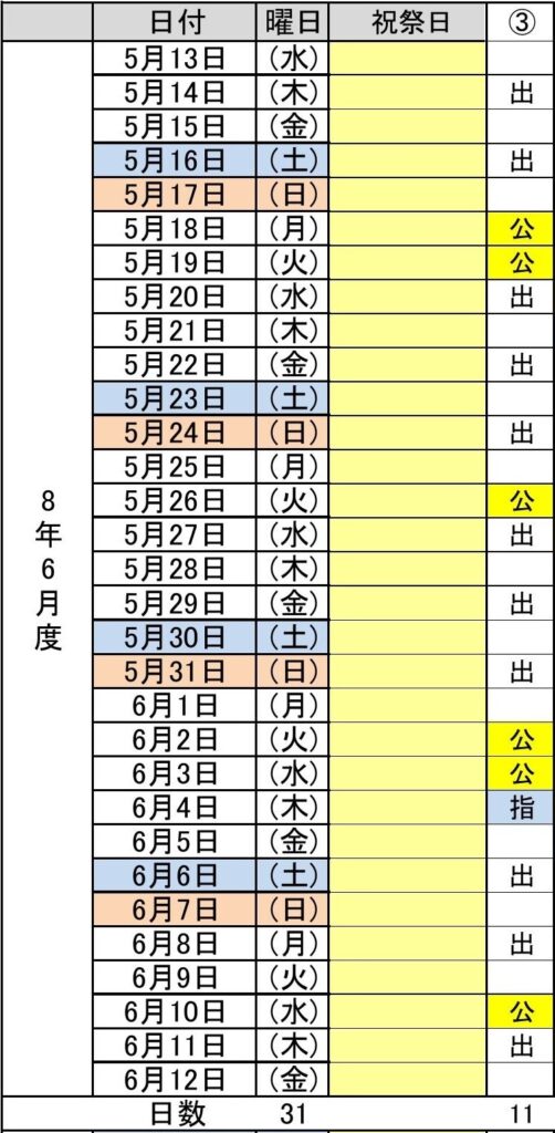 令和8年6月度(5/13~6/12) 3パターン