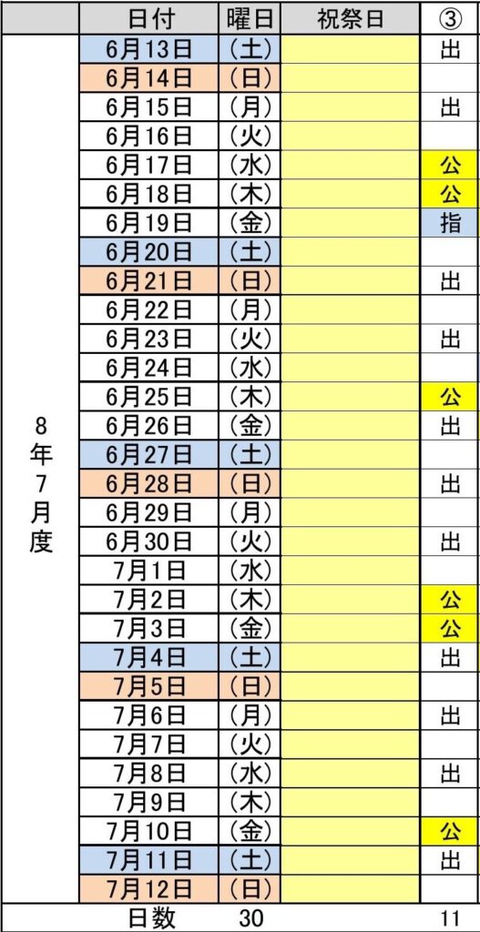 令和8年7月度(6/13~7/12) 3パターン
