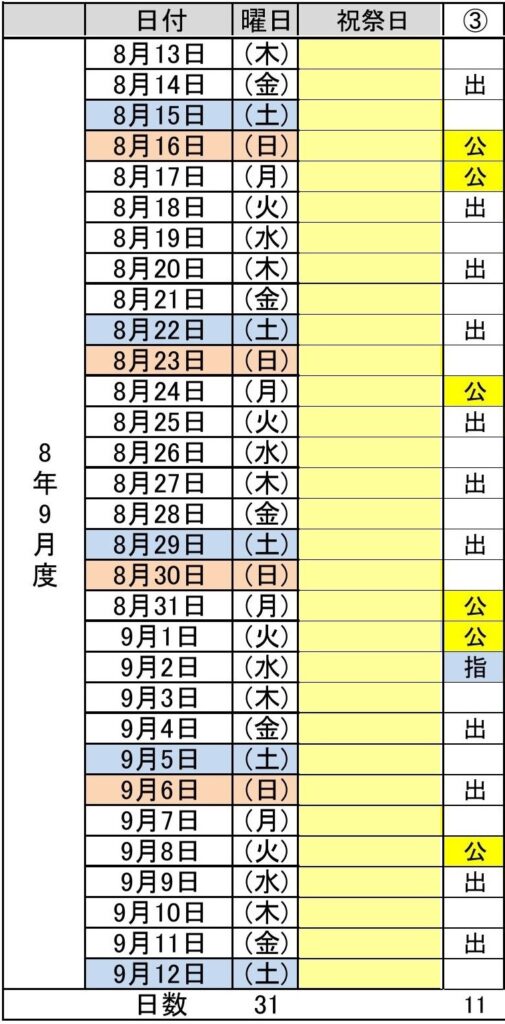 - 令和8年9月度(8/13~9/12) 3パターン