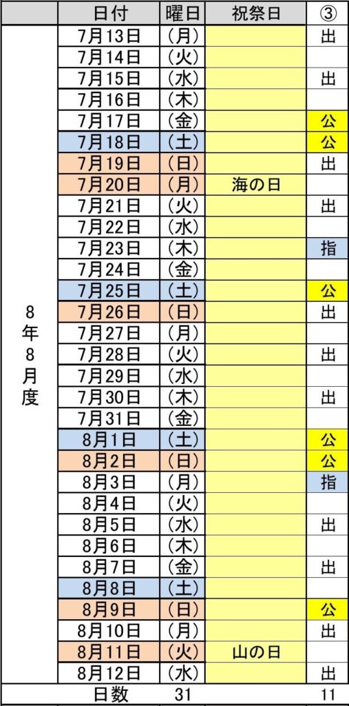 - 令和8年8月度(7/13~8/13) 3パターン