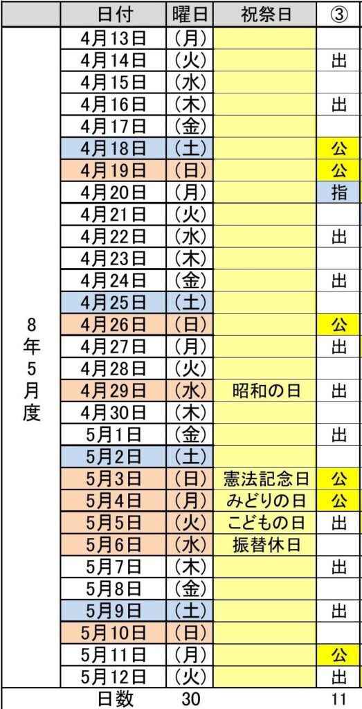 令和8年5月度(4/13~5/12) 3パターン