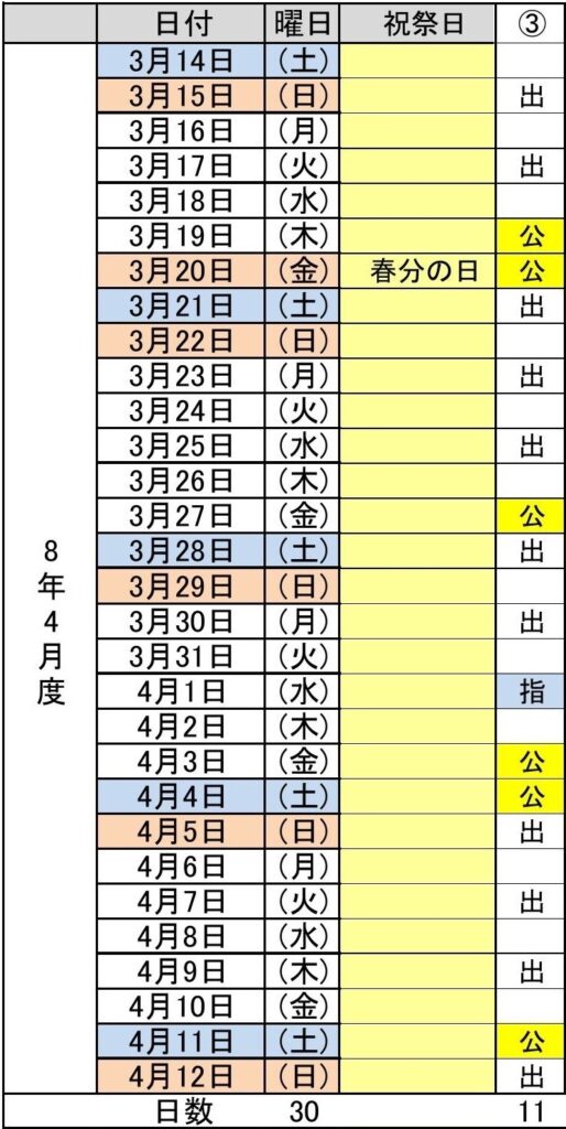 - 令和8年4月度(3/14~4/12) 3パターン