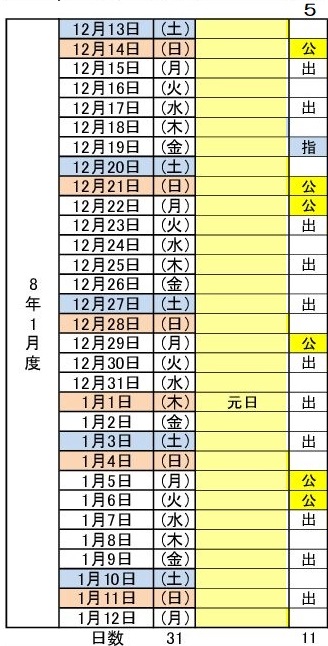 令和8年1月度(12/13~1/12) 5パターン