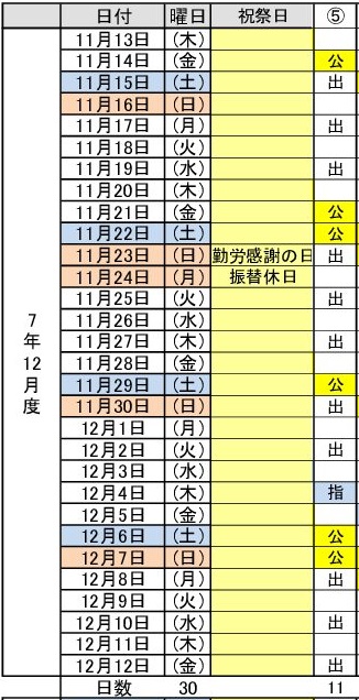 令和7年12月度(11/13~12/12) 5パターン