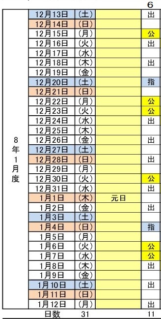 令和8年1月度(12/13~1/12) 6パターン