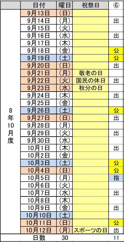 令和8年10月度(9/13~10/12) 6パターン