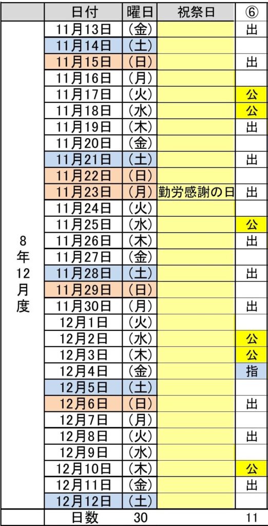 令和8年12月度(11/13~12/12) 6パターン