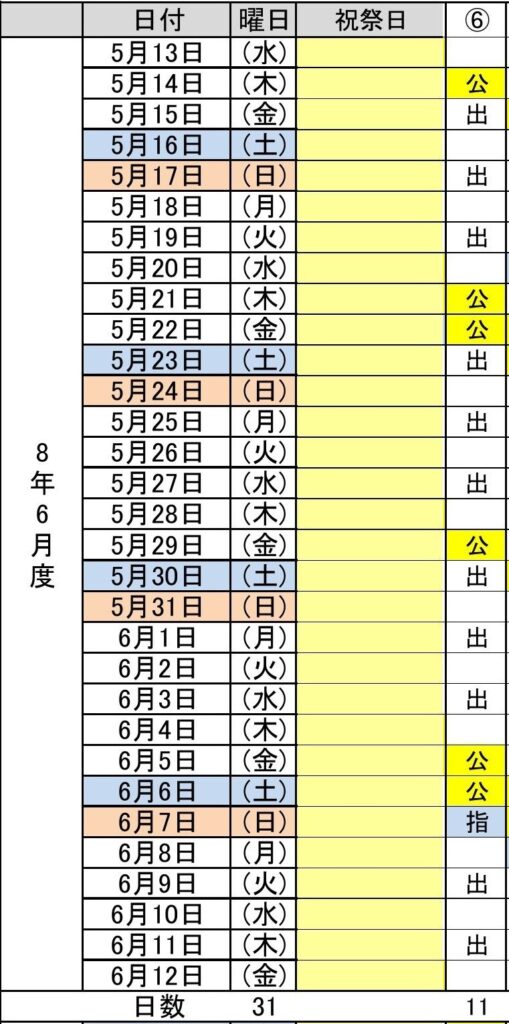 - 令和8年6月度(5/13~6/12) 6パターン