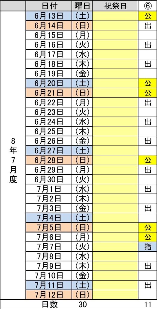 - 令和8年7月度(6/13~7/12) 6パターン