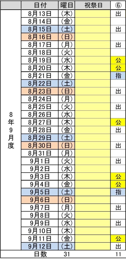 - 令和8年9月度(8/13~9/12) 6パターン