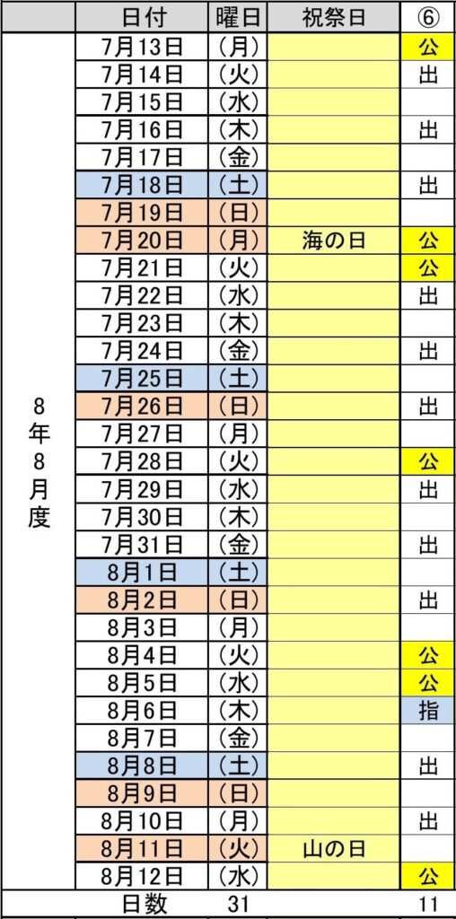 - 令和8年8月度(7/13~8/12) 6パターン