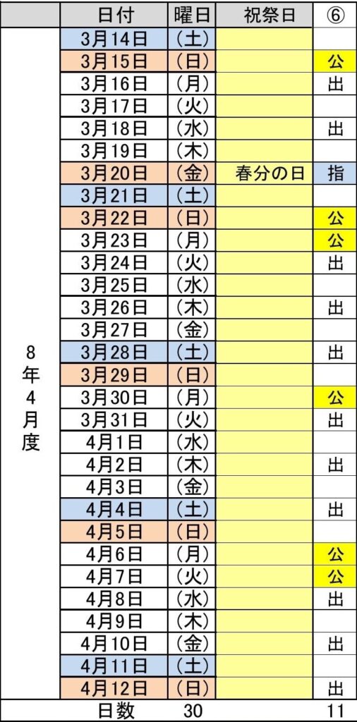 令和8年4月度(3/14~4/12) 6パターン
