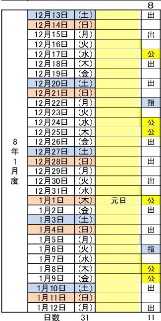 令和8年1月度(12/13~1/12) 8パターン