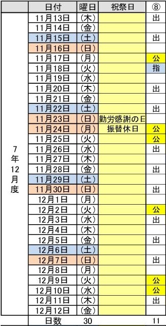 令和7年12月度(11/13~12/12) 8パターン